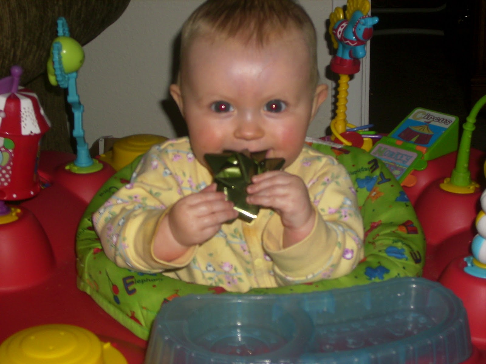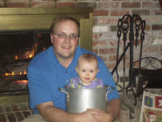 And one last pic- Daddy is already encouraging Little One to love pots as much as her big brother.  I’m sure it won’t be too long before I have two helpers in the kitchen and begging to watch cooking on TV!