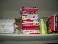 So you can see that while I have a stockpile, it’s spread throughout the house in areas close to where the items are needed. I don’t want to spend time going all the way to a stockpile room everytime that I need something, so I tend to keep each item stockpiled right in my cabinets so that I know when I’m out. I have only a month or two of most items, but you can see that there are also many items I don’t stockpile at all. The few items that I do have multiple months’ worth on hand (beans, pediasure, and ragu) don’t take up a massive amount of room. I do have a stockpile of office supplies, but those are still buried somewhere in moving boxes in the office/guest bedroom.