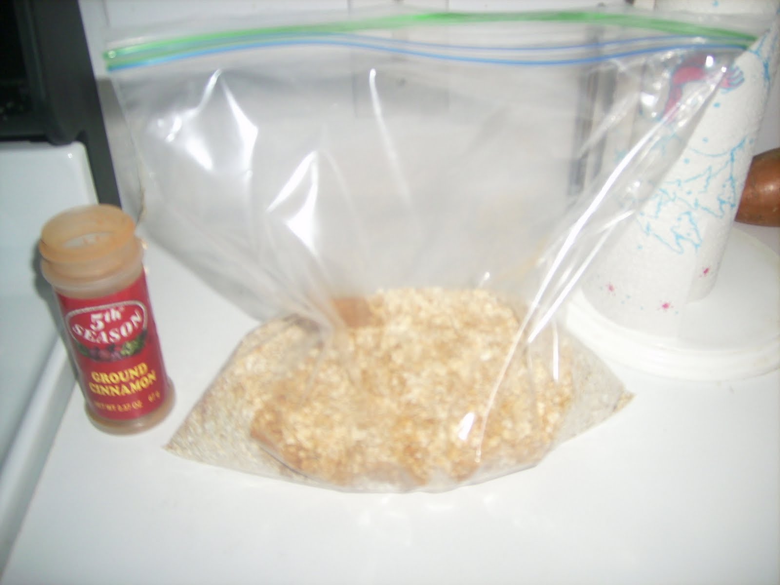 Dump other 1/2 canister of oatmeal into the same ziplock