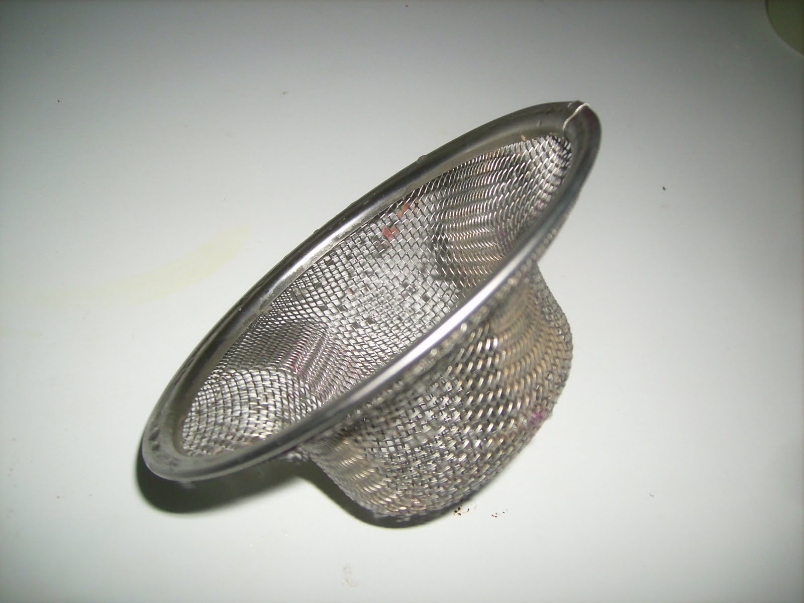 Enter the mesh sink strainer.  As I was looking for some other small kitchen item when we moved here last May, I noticed this sink strainer for $1.97 at Walmart.  Figuring it was worth it, I threw it in the cart.  If I had to replace it today, I’d pay $10!  It has saved me that much time and frustration.  I also love the frugal benefit of not having so much gunk down in the disposer.  A couple of bumps over the garbage can and a quick rinse and it’s good as new.  (I do remove it if I’m cutting or peeling food and intend to use the disposer)