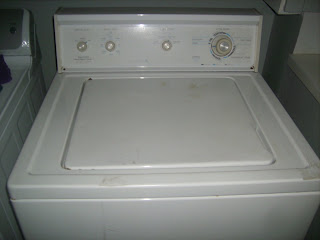 When we bought our current house a few months back, a washer and dryer was first on my shopping list.  Problem was they were quite a bit more expensive than what we had paid 10 years earlier.  Most machines were much fancier too.  But I’m a plain Jane kind of girl.  I eventually settled on a pair for a total of $650!  The washer was a new fangled thing with a water level detector and a new innovative agitator.  In the first load went.  When it came out the clothes on top weren’t wet, and strangely it seemed like the same clothes that were last to go in the dryer.  Did I mention they still had dirt and food on them too?  I check all the settings and we tried it again.  I took a picture before the agitator starts and checked it just before the spin cycle.  Sure enough same clothes were on top and they were barely wet.  We called GE and a technician came out.  He said nothing was wrong with the machine, it just wasn’t designed well and he was getting lots of calls for the same problems, but there was no recall.  So the washing machine went back to the store.  I began searching for a  model with a regular agitator when we got that horrible call that our renters in our house in AR were breaking their lease.  So for 3 months I’ve had a dryer but no washer.  I watched craigslist from time to time, but didn’t feel good about spending $150-$200 on a used machine when we were supporting 2 mortgages on just 1 income.  A few Saturdays ago I got a phone call from a friend that there was a pair sitting by the road near her house for sale for $50.  They were older, but she said she would feel comfortable buying the washer.  She lives several miles from me so her husband went over to see if they would sell just the washer.  Sunday afternoon hubby and Turkey went to pick up my new washer for $30!  My husband was skeptical (understandably so if you could have seen how dirty and nasty this thing was) but we got it all hooked up and it’s working fine.