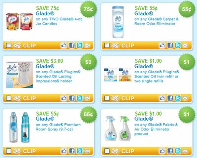 As I waited to meet a friend yesterday at Walgreens I found tons of Glade items on clearance, so I’d check there to use these Qs for some cheap or free glade!   Click on Household to find them fast!