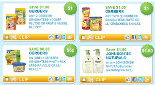 Gerber Graduates are on sale this week for $2 at Target. Use the Qs above to get them for $1.50 or $1.45 each! I’ve seen the Johnson’s Naturals 9 oz lotions priced at around $2.99. Use this $1.50 Q to get them for $1.49 or combine with the $.75 Target Q from the baby mailer to get it for $.74! Let me know if you find other sales on these items please!