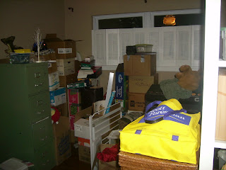 If you remember, my intended office had become an impromptu storage room when the garage flooded. Repeatedly. We’d already filled the closets in the other rooms so there wasn’t any other place for these boxes. Obviously then there wasn’t exactly room for my desk and computer.
