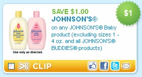 Use this $1 off any Johnson’s product (4 oz or larger and excluding buddies) at Target or Walmart to score the 9 oz bottles of head to toe body wash for just $.97. If you have a $.75 johnson’s Q from the baby mailer you can stack the two Qs to get it for just $.22! I have bought this several times in the past and keep it on hand to add to a baby shower gift.