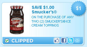 There’s a hot new Q out today for $1/2 Smucker’s toppings. I’ve seen these at Walmart for as low as $1.50 each! $1 a jar is a pretty good price for these and they are very rich tasting! Even though it’s not exactly ice cream season, remember toppings will keep for quite a while if they are unopened. This one usually goes pretty fast, so print your two quickly!