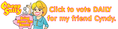 My friend Cyndy from Mama’s Money Tree is in a contest to win a paying blogging job.  (No she isn’t trying to be the next Kate Gosselin LOL) She’s currently in 3rd place for Texas.  She does a great job of managing the 3 blogs that she currently writes and she could really use and would appreciate your votes.  It just takes 2 clicks to vote- nothing to sign up for and no information to give.  This round of the contest ends tomorrow Wed. 11/30. Thanks ya’ll!