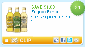 I shopped at Walmart this morning, which is a rare occurrence.  I checked the prices of olive oil and the cheapest bottle I found was $5.48!  This week at CVS the Filippo Berio Olive Oil is on sale for $3.99, so when you use this $1/1 Filippo printable Q you’re getting it for nearly 50% off the price at Walmart!