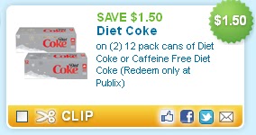 Also, if you have a Publix nearby you may want this rare printable for $1.50/2 Diet Cokes (12 pks).