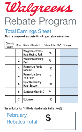 You can make your purchases in as few or as many transactions as you want/need. Simply note the qualifying items you purchased and the quantity purchased in the appropriate boxes. Some items will have a limit of 1 while others will allow multiple purchases. If you’ve lost your booklet you can print one off at www.walgreensrebates.com
