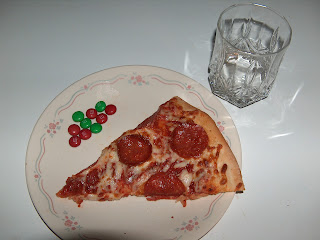 I debated about whether or not to enjoy pizza tonight with the rest of the family. In the end I decided that since I had abstained from M&Ms for nearly 5 days I should treat myself. I tallied up my food from the entire week and saw that I had $.71 left to spend for the 5 day challenge. A hot ‘n ready pizza is $5.41 including tax, so I ate 1 slice of pizza (yes, I was honest and picked one that looked to be 1/8 of the pizza) for 67.6 cents. Then I weighed a serving of M&Ms to see how many were in a serving. I’d bought this bag for about $.63 each so I was able to eat 10 M&Ms. Will I be hungry later tonight with only 1 slice of pizza? Probably, but I’m still enjoy the taste of accomplishment. My other slices of pizza will be waiting for me in the morning