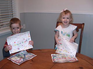 Yesterday afternoon the kids were quickly destroying the house and my sanity (think cowboys and indians with 3 ft. tall kids) , so I knew it was time for an activity. The 3 of us thrive on structure so these activity times are actually the calmest part of our summer days.