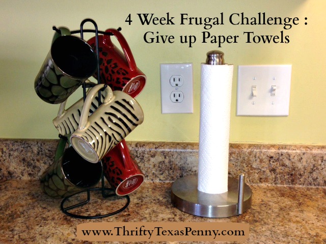 My challenge to you for the next 4 weeks is to try your best to go without using paper towels. To make it more manageable let’s give a paper towel allowance – say 4 paper towels a week. Yes, I said 4 paper towels, not 4 rolls of paper towels. This will allow for some cleaning of really icky messy stuff or for cleaning after cooking raw meats.